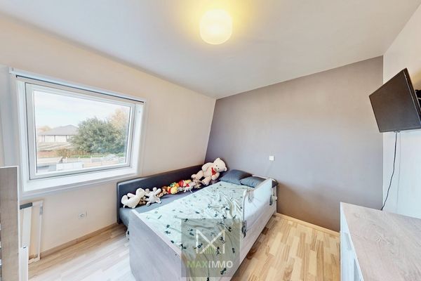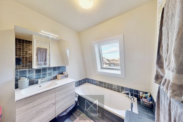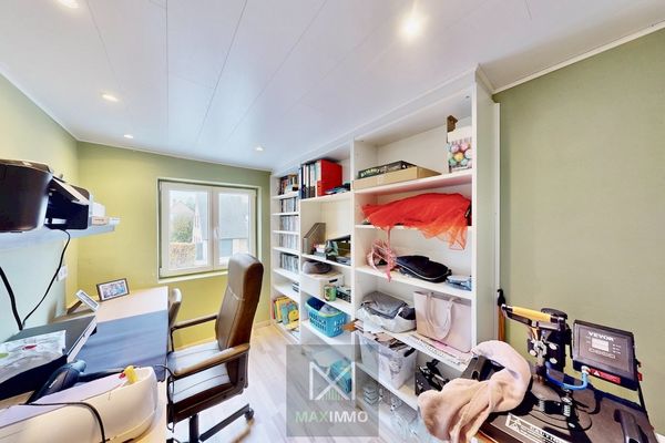 À l’étage, vous trouverez 2 chambres spacieuses ainsi qu’un bureau ou une petite chambre d’enfant, ainsi qu’une salle de bain confortable avec baignoire et douche à l’italienne. La maison bénéficie également de 16 panneaux solaires, de double vitrage, de volets électriques et d’une chaudière Vaillant (2018).