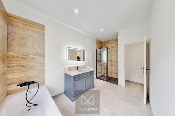 À l’étage, la maison propose 3 chambres complètes, dont une suite parentale avec sa propre salle de bains – un vrai plus en termes de confort.