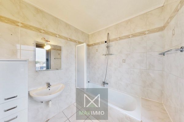 Het appartement beschikt verder over één ruime slaapkamer met aansluitende badkamer, voorzien van een bad/douche en wastafel. Aan de inkom bevindt zich eveneens een apart toilet.